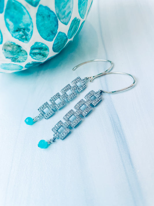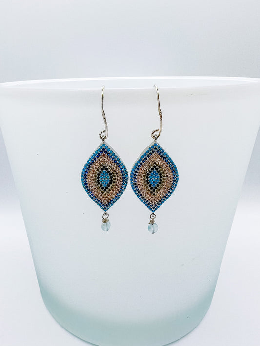 Sterling Silver CZ Evil Eye Dangle Earrings