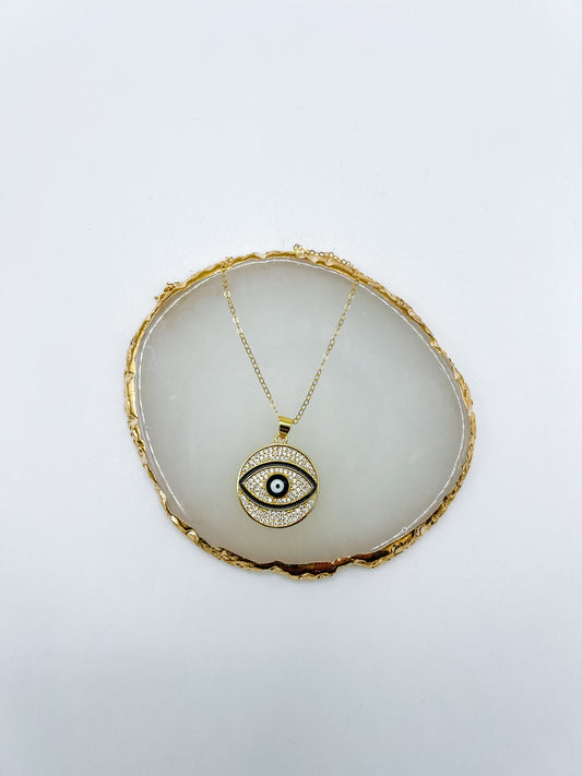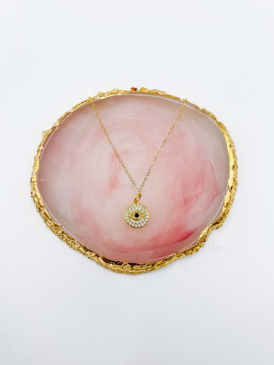 Small Sparkle Gold Evil Eye Pendant Necklace